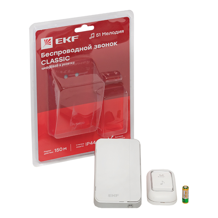 Серия звонков EKF состоит из цифровых и аналоговых устройств. Цифровые звонки EKF Proxima обмениваются между собой уникальным цифровым кодом. Таким образом исключается ситуация, когда Ваш звонок будет срабатывать от других кнопок, работающих на одинаковой частоте, как в случае с аналоговыми звонками. Цифровая технология имеет в своем распоряжении более миллиона комбинаций уникального кода, посредством которого устройства связываются между собой. Связь кнопка-приемник является обучаемой и позволяет создавать комбинации из нескольких кнопок – одного приемника и наоборот. Линейка аналоговых звонков EKF Basic включает в себя проводные и беспроводные изделия эконом-класса. Основные преимущества данных звонков – это привлекательный внешний вид и доступная цена.Не рекомендуется массово использовать звонки серии Basic в одном многоквартивном доме, так как при нажатии на кнопку звонка сигнал будет срабатывать в нескольких устройствах одновременно!