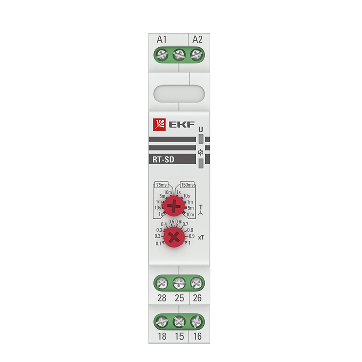 Реле времени RT-SBA EKF PROxima является электронным коммутационным аппаратом с регулируемой установкой времени. Реле предназначено для включения нагрузки с задержкой времени включения. Переключение диапазона времени производится с помощью поворотного регулятора, расположенного на лицевой поверхности реле.