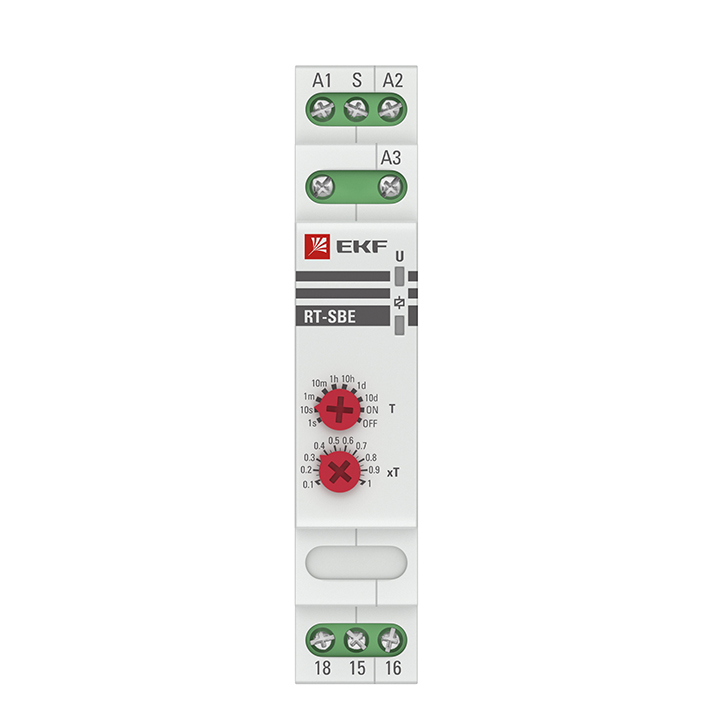 Реле времени RT-SBA EKF PROxima является электронным коммутационным аппаратом с регулируемой установкой времени. Реле предназначено для включения нагрузки с задержкой времени включения. Переключение диапазона времени производится с помощью поворотного регулятора, расположенного на лицевой поверхности реле.