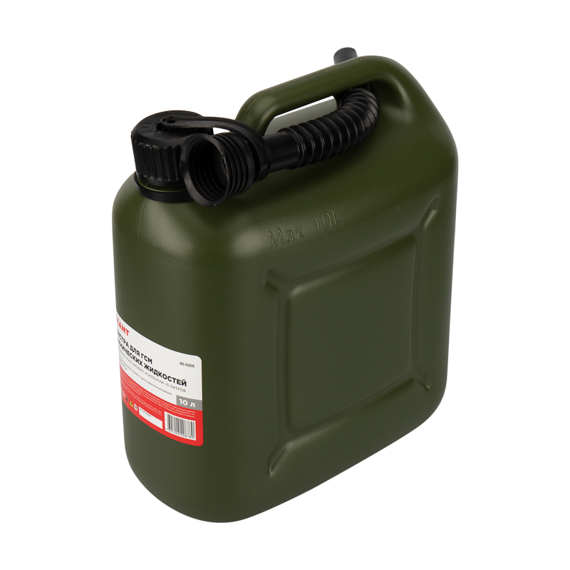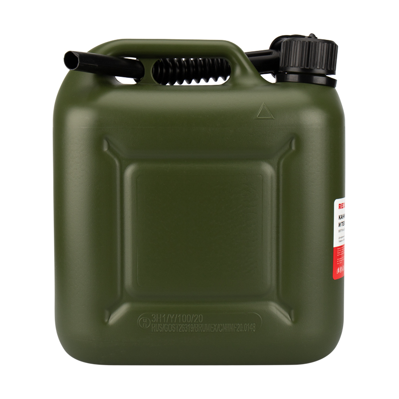 Вертикальная усиленная канистра REXANT объемом 10 л предназначена для хранения и транспортировки топлива и горюче-смазочных материалов. Изготовлена из высококачественного прочного (первичного в производстве) полиэтилена (ПЭНД). Имеет международный сертификат соответствия перевозки легковоспламеняющихся грузов, наличие которого дает возможность заправлять канистру на любых АЗС, находящихся на территории РФ и ЕС. Изделие имеет: боковые ребра жесткости, утолщенные стенки (которые позволяют выдержать высокие нагрузки при экстремальных условиях эксплуатации), зеленый цвет изделия, широкую уздечку держания заливного шланга (которая не прокручивается вместе с крышкой и не ломается на морозе), выемку на дне изделия для руки, эргономичную широкую ручку, усиленный шов на дне, детскую защиту на крышке, широкую горловину для залива и заправки, гофрированный гибкий шланг с системой «антибульк», маслобензостойкий уплотнитель на крышке, антистатические присадки, дополнительную ручную обработку швов и горловины.