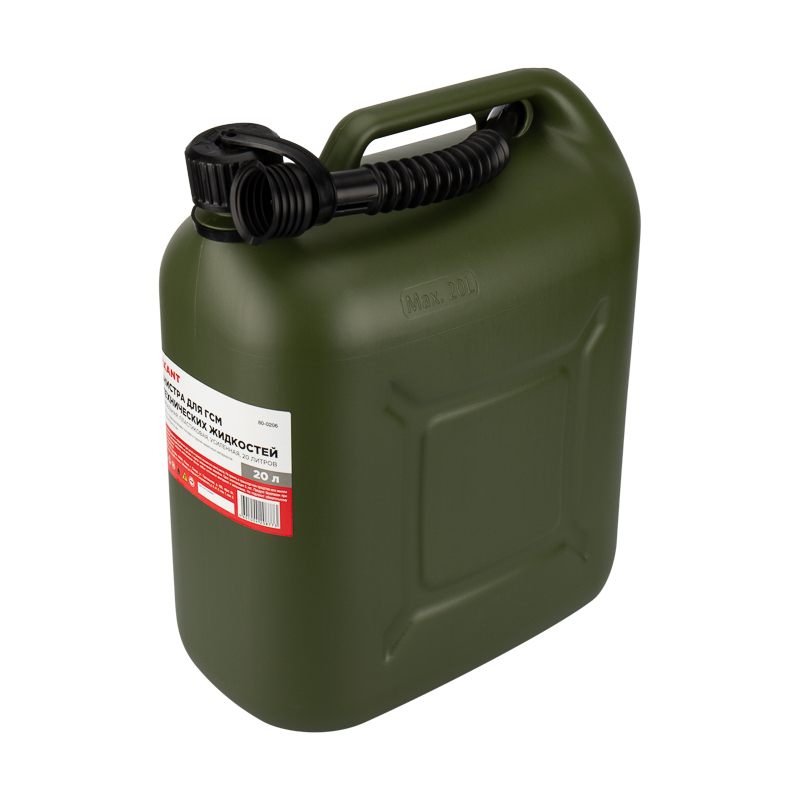 Вертикальная усиленная канистра REXANT объемом 20 л предназначена для хранения и транспортировки топлива и горюче-смазочных материалов. Изготовлена из высококачественного прочного (первичного в производстве) полиэтилена (ПЭНД). Имеет международный сертификат соответствия перевозки легковоспламеняющихся грузов, наличие которого дает возможность заправлять канистру на любых АЗС, находящихся на территории РФ и ЕС. Изделие имеет: боковые ребра жесткости, утолщенные стенки (которые позволяют выдержать высокие нагрузки при экстремальных условиях эксплуатации), зеленый цвет изделия, широкую уздечку держания заливного шланга (которая не прокручивается вместе с крышкой и не ломается на морозе), выемку на дне изделия для руки, эргономичную широкую ручку, усиленный шов на дне, детскую защиту на крышке, широкую горловину для залива и заправки, гофрированный гибкий шланг с системой «антибульк», маслобензостойкий уплотнитель на крышке, антистатические присадки, дополнительную ручную обработку швов и горловины.