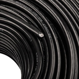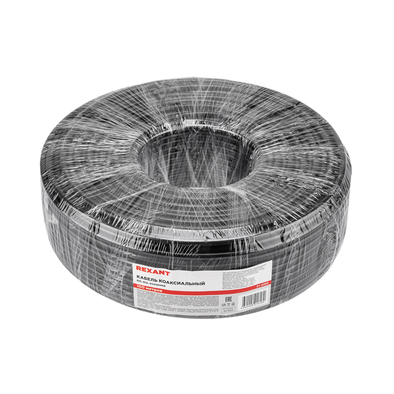 Кабель RG-6U (75 Ом), CCS/Al/Al 64 % (бухта 100 м) черный (OUTDOOR) REXANT, коаксиальный радиочастотный со вспененной полиэтиленовой изоляцией и в полиэтиленовой (PE) оболочке. Является самым распространенным решением для подключения внутренних и межблочных соединений общепромышленных и бытовых радиотехнических устройств, для подключения систем телевидения, а также для подключения видеокамер наружного и внутреннего наблюдения. Техническое описание:Внутренний проводник: стальная проволока, плакированная медью Диаметр внутреннего проводника: 1,02 ммДиаметр по внутреннему диэлектрику: 4,8+/-0,2 ммДиэлектрик: вспененный полиэтилен Экран в виде сплошной алюминиевой фольгиВнешний проводник: из алюминиевой проволоки в виде оплёткиДиаметр проволоки экрана: 0,12-0,15 ммПлотность оплетки: 64 %Наружный диаметр: 6,8+/-0,2 ммМатериал оболочки: полиэтилен PEЦвет оболочки: черныйДлина: 100 метровТехнические характеристики:Волновое сопротивление: 75+/-3,0 ОмСопротивление связи: 200 мОм/мРабочая температура: –60...+60 °СМинимальная температура монтажа: –15 °ССрок службы: 25 лет