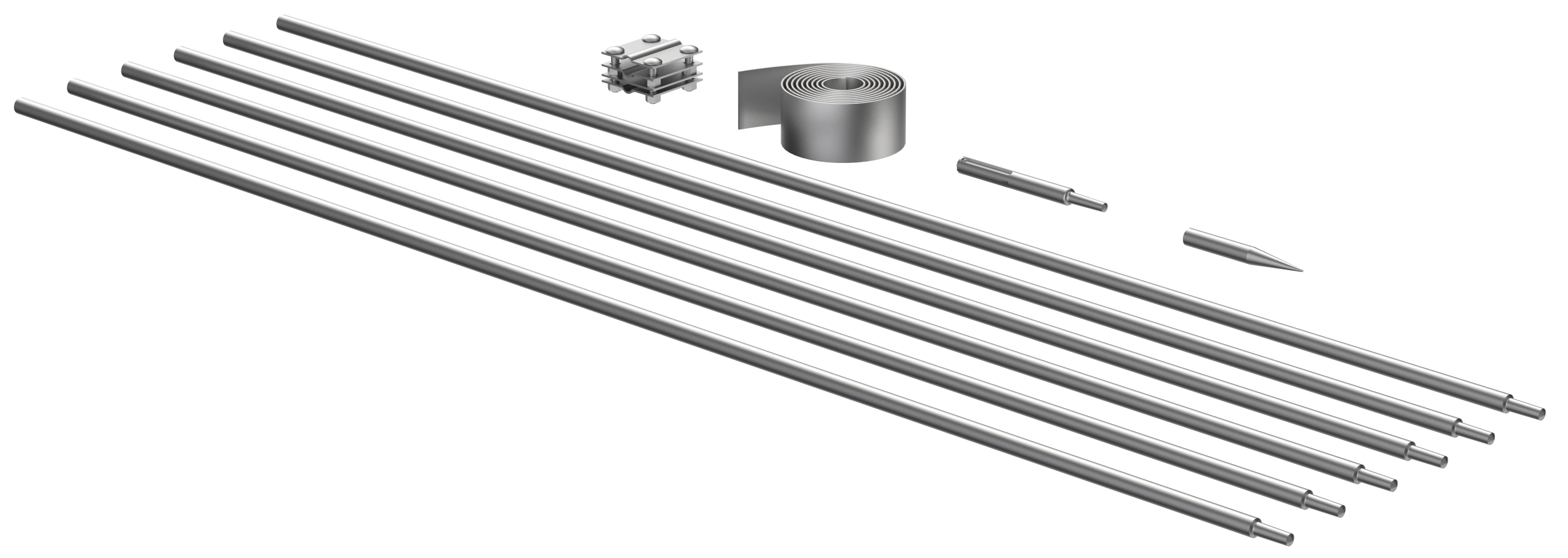 Изготовлен из горячеоцинкованной стали. Цинковое покрытие стержней заземления обеспечивает высокие электрохимические показатели, стойкость к механическим воздействиям и увеличивает срок службы.