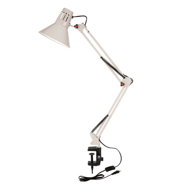 Винтовой зажим позволяет прочно фиксировать светильник как на стол, так и на спинку кровати и на прочие предметы мебели, а гибкая стойка позволяет менять направление света на 360°.