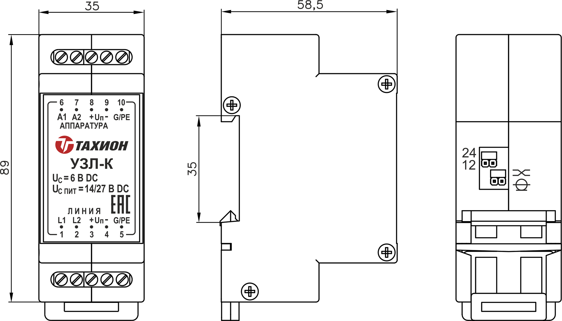 • Способ монтажа на DIN-рейку