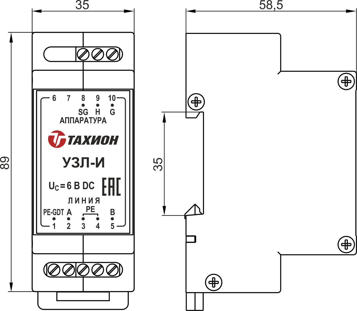 • Габаритные размеры ДxШxВ 89 мм x 35 мм x 58.5 мм