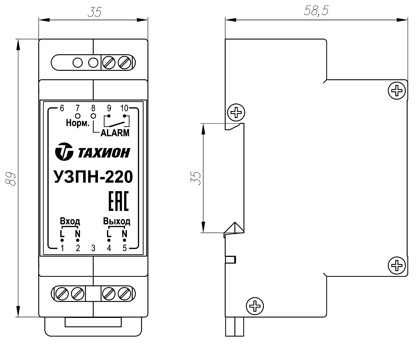 • Способ монтажа на DIN-рейку