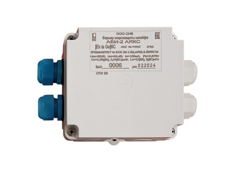 в герметичном корпусе IP66, Траб от -40 до +60°С. Предназначен для обеспечение искробезопасности двух шлейфов пожарной или охранной сигнализации.
