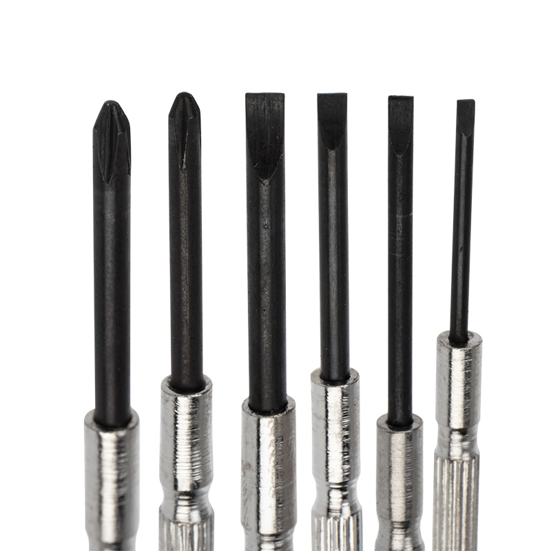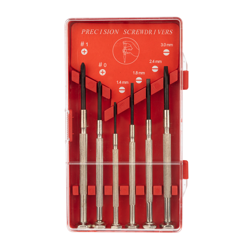 Набор часовых отверток (6 предметов) ht-06 REXANT предназначен для выполнения высокоточных механических работ (монтаж электроаппаратуры, сборка и ремонт часов и т.п.). Набор часовых отверток из 6 предметов включает в себя: отвертки шлицевые — 4 штуки разных размеров (1.4 мм; 1.8 мм; 2.4 мм; 3.0 мм) и отвертки крестообразные — 2 штуки (#0; #1). Все отвертки оснащены намагниченными наконечниками, что делает демонтажные и монтажные работы более простыми даже в труднодоступных местах. Диаметр рукоятки точно соответствует крутящему моменту, поэтому при работе с этим инструментом срыв резьбы или разрыв деталей практически невозможен. Жало изготовлено из высокопрочного металла, что гарантирует его долговечность и износоустойчивость. Данные отвертки имеют конструкцию свободно вращающейся затылочной части ручки. Благодаря рифлению на рукоятках, рука во время работы не скользит, что обеспечивает безопасность при выполнении работ.