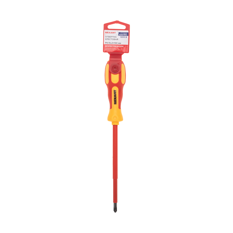 Крестовая диэлектрическая отвертка REXANT предназначена для электромонтажных работ, монтажа/демонтажа крепежных соединений.