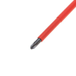 Стержень отвертки, выполненный из высококачественной хромованадиевой стали, покрыт специальным изоляционным материалом и оснащен оксидированным намагниченным наконечником.