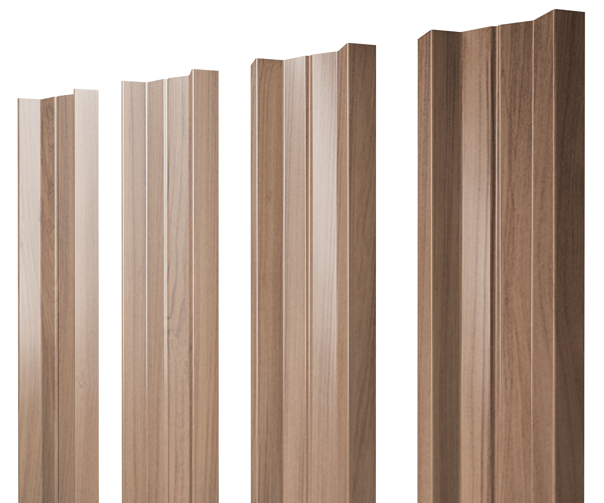 Штакетник М-образный А с прямым резом — вид штакетника отличает выпуклая во внутреннюю сторону форма с канавкой на центральной части и дополнительными боковыми ребрами. Этот профиль можно назвать самым жестким.