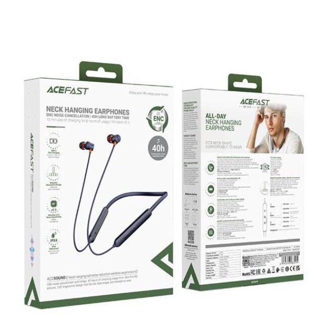 Наушники bluetooth ACEFAST N2 neck hanging call noise reduction wireless earphones синий