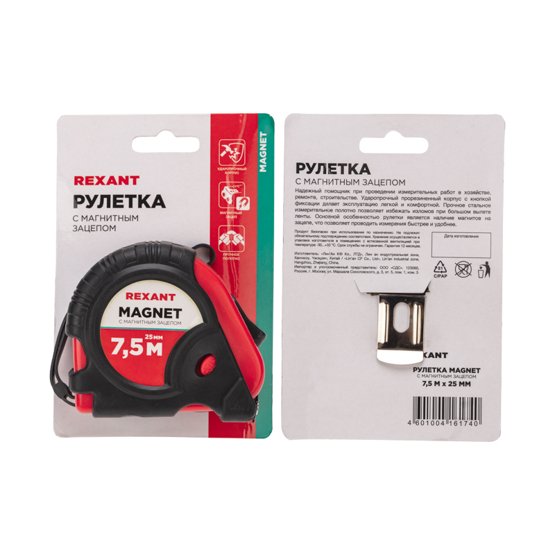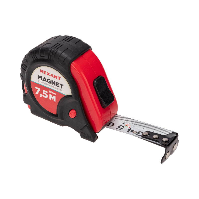 Рулетка – надежный и незаменимый помощник при проведении измерительных работ в строительстве, хозяйстве, ландшафтных и геодезических исследований. Эргономичный двухкомпонентный корпус. Прочное стальное измерительное полотно позволяет избежать изломов при большом вылете ленты. Характеристики:Длина: 7,5 метровШирина полотна: 25 ммЭргономичный дизайнПрорезиненный корпусПолотно из закаленной сталиБольшой вылет полотна без изломаУдаропрочный ABC пластикНадежный кнопочный фиксатор – работать еще быстрее, еще удобнееГлянцевое покрытие полотнаЗацеп с магнитом для комфортной работы