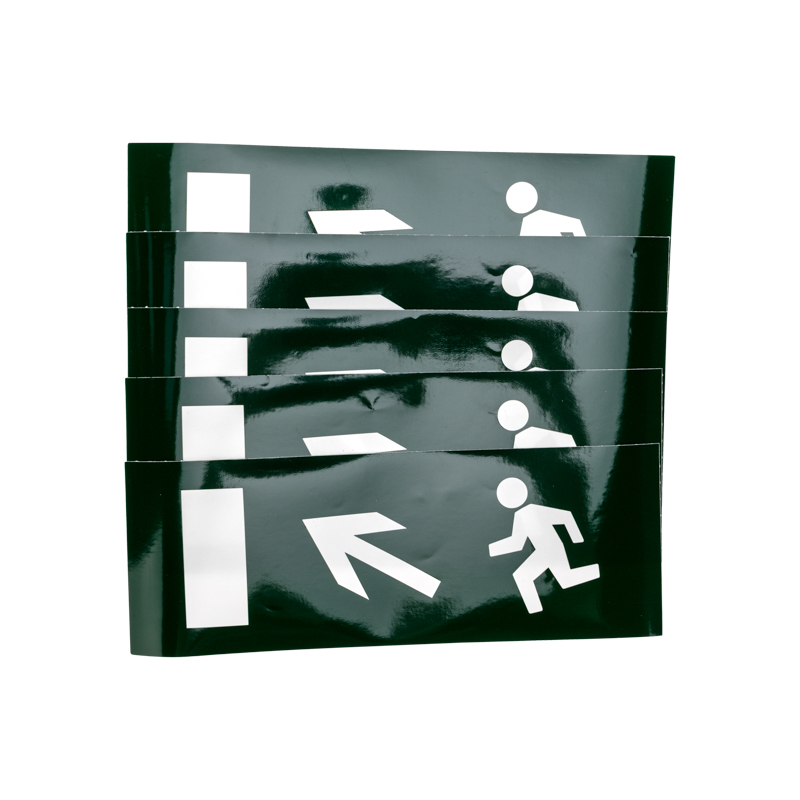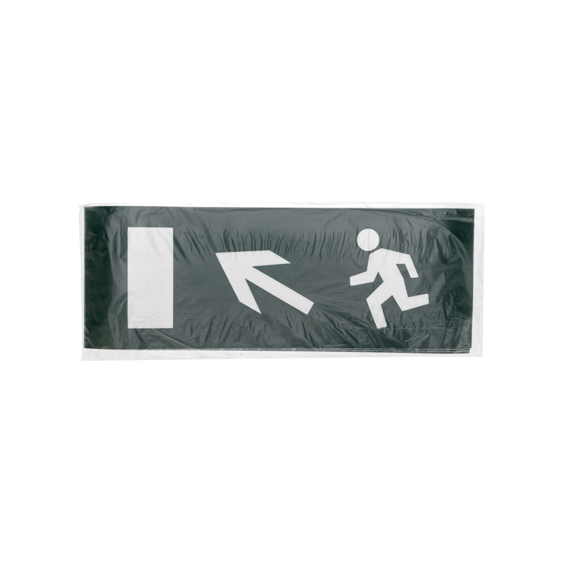 Наклейка для прозрачного аварийного светильника Арт 74-0001, размером 120*320мм. Наклейка выполнена из литой цветной пленки, которая имеет долгий срок службы и защиту от выцветания.