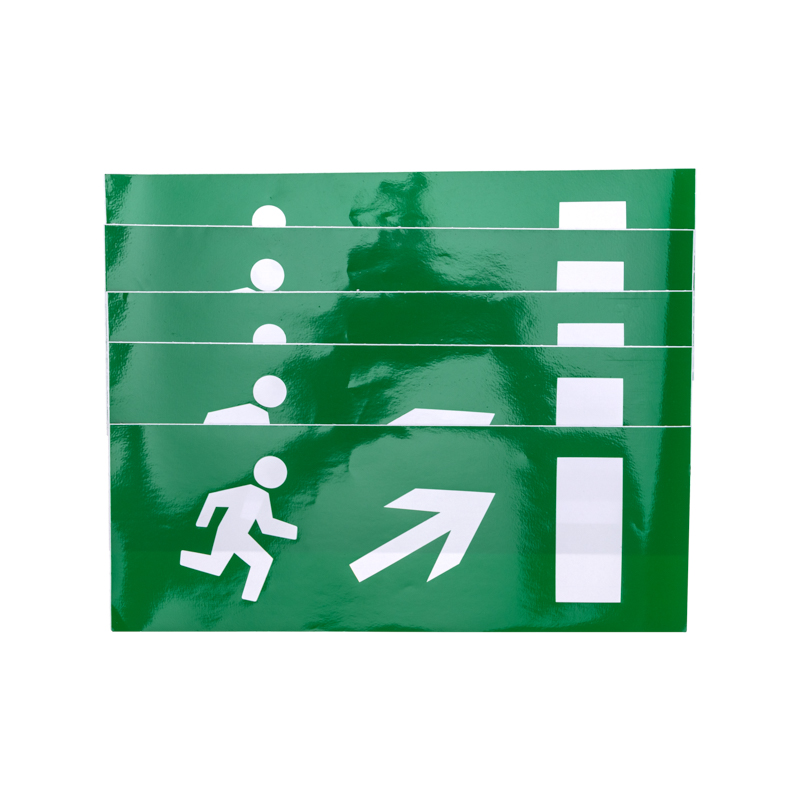 Наклейка для прозрачного аварийного светильника Арт 74-0001, размером 120*320мм. Наклейка выполнена из литой цветной пленки, которая имеет долгий срок службы и защиту от выцветания.