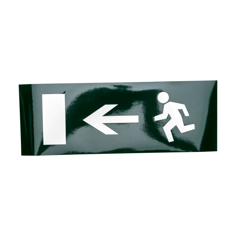 Наклейка для прозрачного аварийного светильника Арт 74-0001, размером 120*320мм. Наклейка выполнена из литой цветной пленки, которая имеет долгий срок службы и защиту от выцветания.