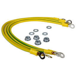 Используются для заземления установленного оборудования к корпусу шкафа/стойки, а также для организации общего контура заземления.Заземление телекоммуникационных шкафовУчитывая требования «Правил устройства электроустановок» (ПУЭ, 1.7.76 п.4) и североамериканского стандарта ANSI/TIA/EIA-607 «Требования по заземлению и электрическим соединениям телекоммуникационных систем коммерческих зданий» телекоммуникационные шкафы подлежат заземлению, как металлические конструкции, которые при пробое изоляции токонесущих частей могут оказаться под напряжением.Заземление телекоммуникационного шкафа – это одно из основных требований правил техники безопасности и охраны труда. Во-первых, заземление позволяет снизить до безопасного значения разницу потенциалов между корпусом телекоммуникационного шкафа и другими металлическими предметами и конструкциями, имеющими естественное заземление. А, во-вторых, заземление позволяет избежать накопления на корпусе шкафа и на установленном внутри него оборудовании статического электричества.Заземление телекоммуникационного шкафа обычно выполняется проводником с медной жилой сечением не менее 4 мм2, который соединяется посредством болтового соединения с существующей в здании телекоммуникационной шиной заземления. Ни в коем случает нельзя допускать соединения нескольких телекоммуникационных шкафов одним заземляющим проводником последовательно. Это чревато разрывом линии заземления и опасно для жизни человека.Для соединения деталей шкафа между собой с целью создания единого контура заземления и заземления оборудования, установленного в шкафу, необходимо использовать комплект заземляющих проводов и 19" шину заземления.Комплект поставки:Провод заземления 30см - 6штПровод заземления 40см - 2штГайка с фланцем М6 - 15шт