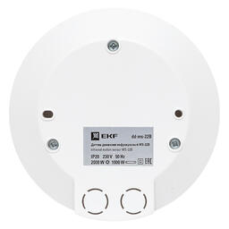 Датчики движения инфракрасные предназначены для экономии электроэнергии за счет автоматического управления освещением и другими инженерными системами. Датчики реагируют на движение людей и других объектов в зоне действия сенсора, принцип работы датчиков основан на отслеживании уровня ИК-излучения в поле зрения. В ассортименте EKF есть датчики, предназначенные для монтажа на стену и потолок накладным или встраиваемым способом. В зависимости от степени защиты датчики можно использовать как в помещении (IP20), так и на улице под навесом (IP44).Рекомендуется использовать ИК датчики в коридорах, подъездах, гардеробных и в других проходных зонах. Алгоритм работы: при возникновении движения в поле зрения датчика встроенное электромеханическое реле коммутирует подключенную нагрузку. После этого нагрузка находится под напряжением в течение заданного времени (время настраивается) и выключается. Дополнительно датчики имеют функцию контроля освещенности. Если освещенность в зоне детекции выше заданного уровня (уровень настраивается), то нагрузка включаться не будет, что позволяет дополнительно экономить электроэнергию в дневное время.