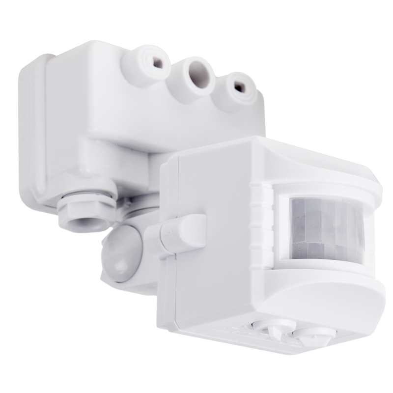 Датчики предназначены для автоматического включения и выключения нагрузки в заданном интервале времени, в зависимости от наличия движущихся объектов в зоне обнаружения датчика и уровня освещенности. Принцип работы инфракрасных датчиков движения заключается в обнаружении изменений инфракрасного (теплового) излучения окружающих объектов.Каждый объект, имеющий температуру, испускает инфракрасное излучение, которое через систему линз или специальных вогнутых сегментированных зеркал попадает на расположенный внутри датчика движения чувствительный сенсор, регистрирующий это. Данный датчик предназначен для подключения к прожектору, имеет степень пыле- и влагозащиты IP44.Угол обзора: 120° Напряжение: 220-240 В Мощность: 1200 Вт Порог освещенности: 10-2000 ЛК Дальность: до 12 мВремя отключения: 10-420 сек Степень защиты: IP44Диапазон рабочих температур: –25...+40 °С