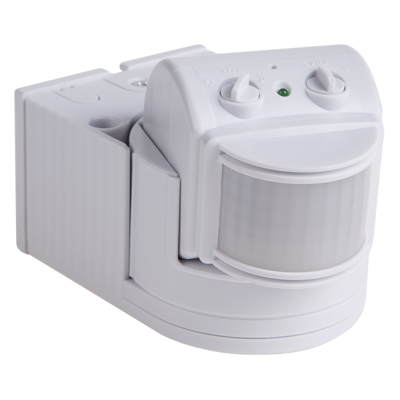 Датчики предназначены для автоматического включения и выключения нагрузки в заданном интервале времени, в зависимости от наличия движущихся объектов в зоне обнаружения датчика и уровня освещенности. Принцип работы инфракрасных датчиков движения заключается в обнаружении изменений инфракрасного (теплового) излучения окружающих объектов. Каждый объект, имеющий температуру, испускает инфракрасное излучение, которое через систему линз или специальных вогнутых сегментированных зеркал попадает на расположенный внутри датчика движения чувствительный сенсор, регистрирующий это. Датчик движения настенный является одним из наиболее популярных типов датчиков движения, устанавливается на стену, угол обзора 180°. Данный датчик имеет степень пыле- и влагозащиты IP44.Угол обзора: 180° Напряжение: 220-240 В Мощность: 1200 Вт Порог освещенности: 10-2000 ЛК Дальность: до 12 мВыдержка включения: 10-420 сек Степень защиты: IP44Диапазон рабочих температур: –25...+40 °С