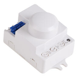 Микроволновый датчик движения излучает высокочастотные электромагнитные волны (частота волн может быть различной в зависимости от производителя, обычно она составляет 5,8 ГГц), которые отражаясь от окружающих объектов регистрируются сенсором и в случае обнаружения малейших изменений отраженных электромагнитных волн, микропроцессор устройства приводит в действие заложенную в него функцию. Данный датчик предназначен для монтажа как на потолок, так и на стену.Угол обзора: 180° (гориз.)/360 (верт.) Напряжение: 220-240 В Мощность: 1200 Вт Порог освещенности: 10-2000 ЛК Дальность: 3-10 мВыдержка включения: 10-900 сек Частота: 5,8 ГГцДиапазон рабочих температур: –25...+40 °С
