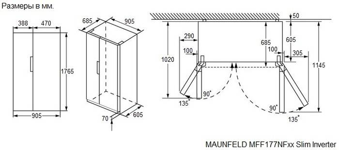 Холодильник Side-by-Side MAUNFELD MFF177NFB Slim Inverter