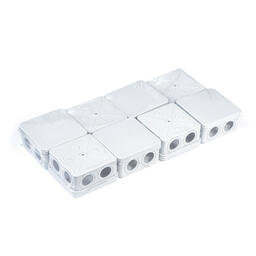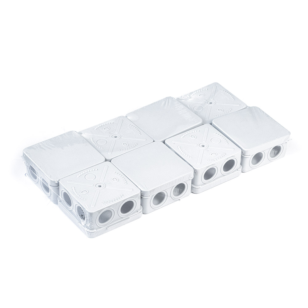 Распаячные (распределительные) коробки применяются для защиты мест соединения проводов и кабелей от механических повреждений, от проникновения пыли и влаги, а лаконичный дизайн способствуют эстетичному монтажу проводки. Коробки имеют высокую стойкость к воспламенению. Подходят для использования в закрытых помещениях. Материал изготовления коробок является безгалогенным, что позволяет использовать изделие в общественных местах, с высоким скоплением людей. Для удобства в ассортименте теперь появилась малая упаковка, состоящая из 8 штук изделий.