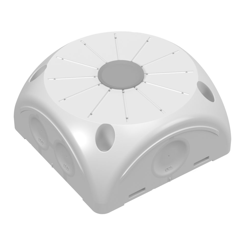 Распределительные коробки для монтажа видеокамер предназначены для применения в системах безопасности и видеонаблюдении. Применяются для защиты мест соединения проводов и кабелей от механических повреждений, проникновения пыли, влаги и вредного воздействия окружающей среды.Мембранные вводы на корпусе электромонтажной коробки позволяют ввести трубы или кабель внутрь коробки с высокой степенью герметичности. Всего 8 мембран для ввода труб из которых 5 шт. для труб диаметром 20 мм и 3 шт. для 25 мм. Допустимо применение сальников или герметичных муфт для ввода труб.Материал изготовления коробок является безгалогенным, что позволяет использовать изделие в местах общего пользования с высоким скоплением людей.Согласно климатическому исполнению В1, коробка подходит для прокладки на открытом воздухе.Конструкция коробки обеспечивает высочайшую степень защиты IP68 за счёт непрерывного контура уплотнителя и надежного соединения крышки с корпусом.