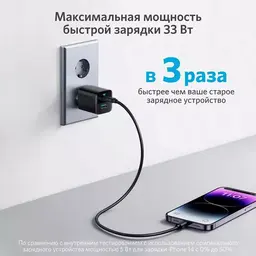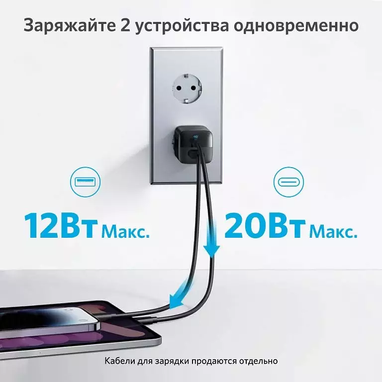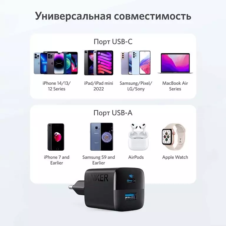 • Особенности 2 в 1: Теперь с помощью портов USB-C и USB-A можно заряжать до 2 устройств одновременно.