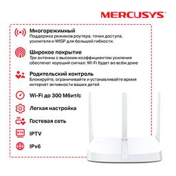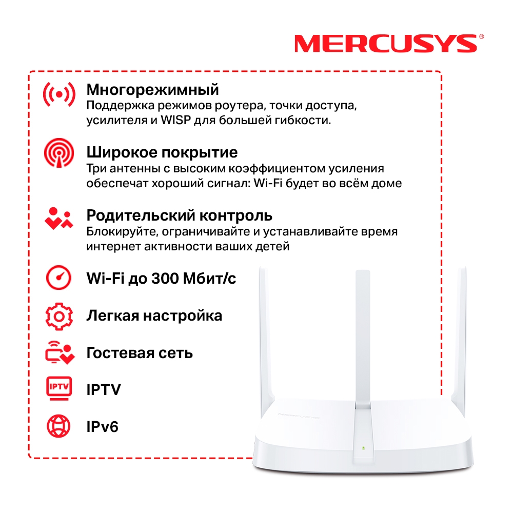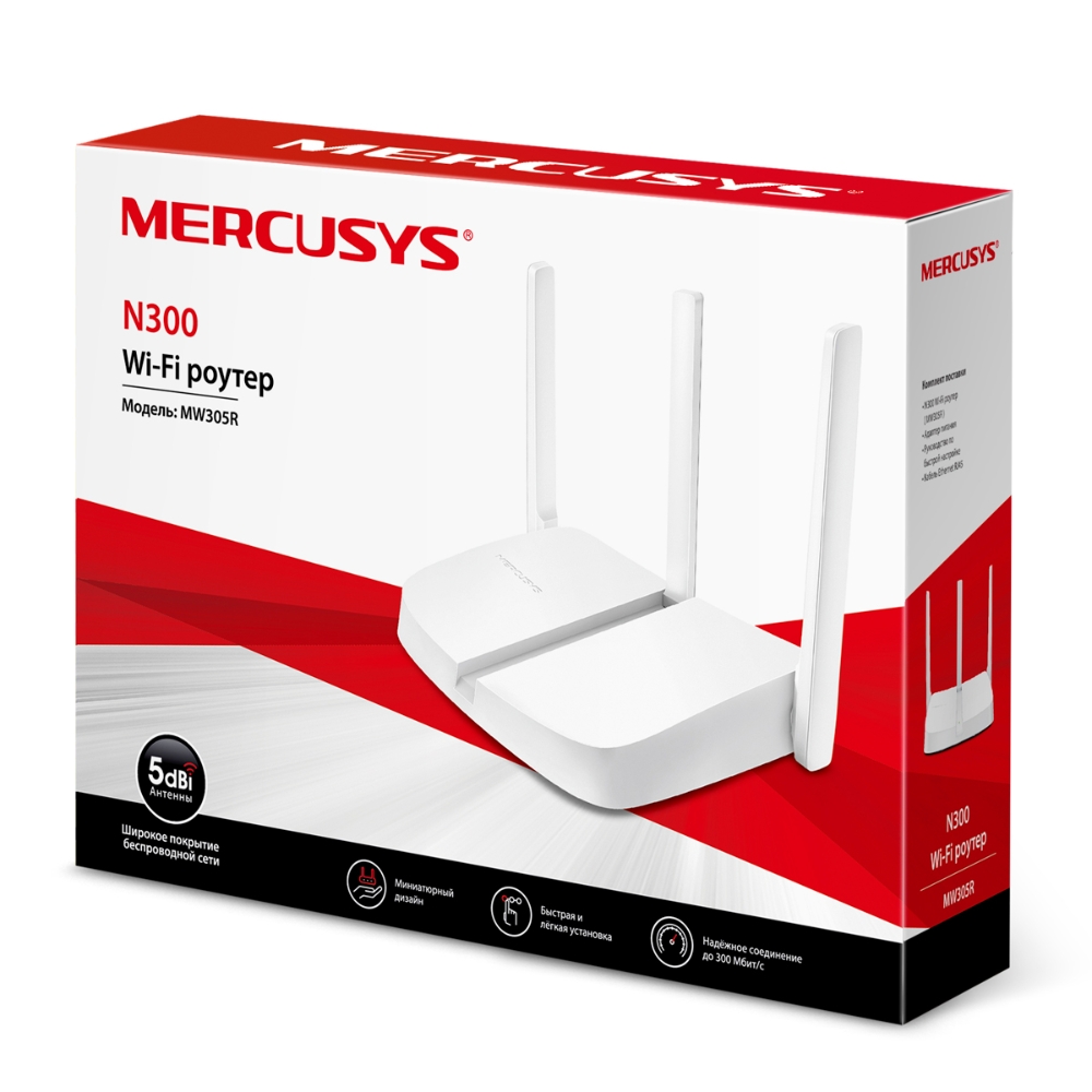 Mercusys MW305R — это Wi-Fi роутер, предназначенный для обеспечения беспроводного подключения к интернету. Он поддерживает стандарт N300, что позволяет достичь скорости передачи данных до 300 Мбит/с. Роутер оснащен одним WAN портом и двумя LAN портами со скоростью 10/100 Мбит/с, а также двумя фиксированными антеннами, что обеспечивает стабильное и надежное подключение. Mercusys MW305R идеально подходит для использования в домах и малых офисах, где требуется надежное и быстрое беспроводное подключение.