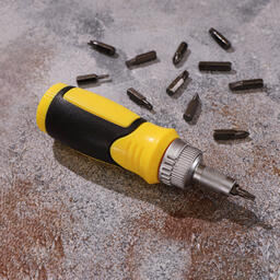 Набор 13 предметов с реверсивной отверткой REXANT предназначен для выполнения монтажных и демонтажных работ с резьбовыми соединениями. Биты набора выполнены из хромованадиевой стали. Отвертка оснащена реверсивным механизмом (реверс по часовой стрелке, реверс против часовой стрелки, фиксация).Для удобного хранения и транспортировки насадки можно хранить в рукоятке отвертки.В комплект входят биты: SL5, SL6, U6, H4, H5, H6, PH1, PH2, T1.0, T1.5, T2.0, T3.0.