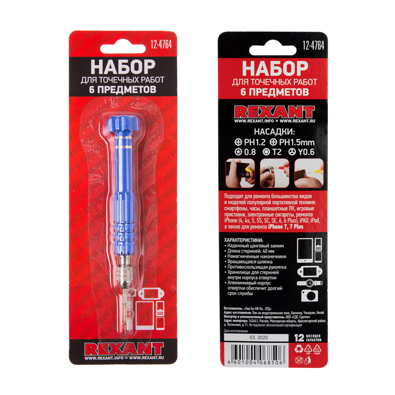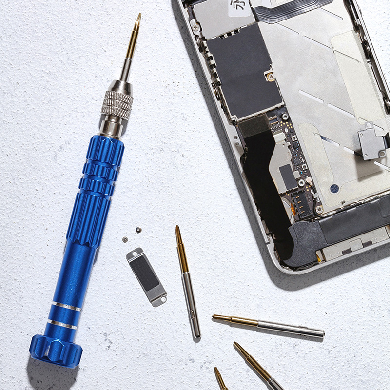 Биты набора выполнены из хромованадиевой стали. Магнитный держатель обеспечивает быструю замену и надежную фиксацию насадок.Для удобства хранения и транспортировки все биты можно хранить в корпусе отвертки, содержит 6 предметов:ОтверткаTORX (шестигранная звезда): T2PHILLIPS (крестовая): PH1.2, PH1.5 mmPentalobe (шлиц для продукции Apple): 0.8Tri-Wing (трехлистник): Y0.6 для iPhone7, 7 plus, Apple WatchПодходит для ремонта большинства видов и моделей популярной портативной техники: смартфоны, часы, планшетные ПК, игровые приставки, электронные сигареты, ремонта iPhone (iPhone 4, 4s, 5, 5S, 5C, SE, 6, 6 plus), iPAD, iPod. А также ремонта IPhone 7/7 Plus, Apple Watch.