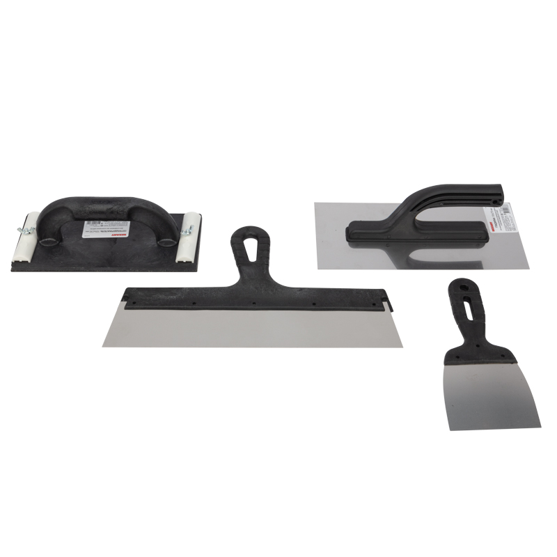 Шпатель 100 мм нержавеющая сталь, пластмассовая ручка REXANTШпатель фасадный 350 мм, нержавеющая сталь пластмассовая ручка REXANTГладилка нержавеющая 130х270 мм, пластиковая ручка REXANTСеткодержатель на винтах 230х105 мм REXANT