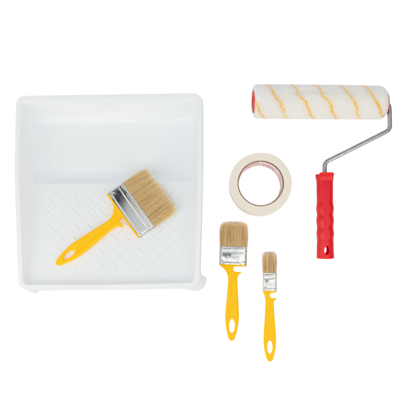 Малярный скотч (крепп) 48 мм (рулон 50 м)Валик полиамид белый с желтой полосой, ворс 11 мм, ширина ролика 240 мм, Ø 42 мм, бюгель 8 мм, серия «Мастер» REXANTКисть плоская «Эмали» 25х10 мм REXANTКисть плоская «Эмали» 50х12 мм REXANTКисть плоская «Эмали» 100х12 мм REXANTКюветка (ванночка) малярная 33х35 см, белая REXANT