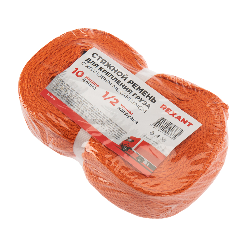 Стяжка с замком REXANT длиной 10 м обеспечивает надежное закрепление груза и существенно упрощает перевозку крупногабаритных предметов.