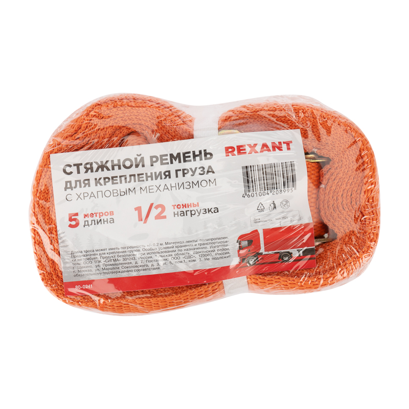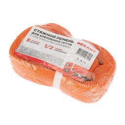 Стяжка с замком REXANT длиной 5 м обеспечивает надежное закрепление груза и существенно упрощает перевозку крупногабаритных предметов.