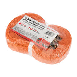 Стяжка с замком REXANT длиной 8 м обеспечивает надежное закрепление груза и существенно упрощает перевозку крупногабаритных предметов.
