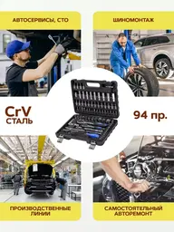 • Инструменты в наборе трещотка (2 шт.), ключ гаечный (4 шт.)