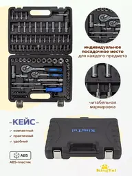• Головки торцевые (33 шт.), глубокие торцевые (9 шт.), свечные (1 шт.), головки со вставкой (17 шт.)