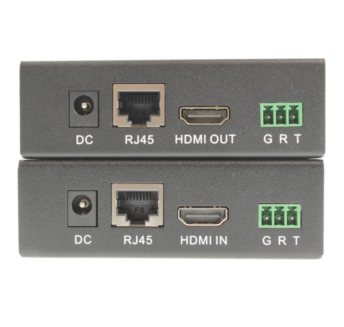 Комплект для передачи HDMI, RS232, ИК управления и питания по кабелю витой пары (HDBaseT). Расстояние передачи до 40м (4K2K(30Гц)), до 70м(1080p). Поддержка технологии Power over HDBaseT(PoH). Поддержка HDMI 1.4 и HDCP 1.2. Передача RS232 в прямом и обратном направлении. Передатчик:Вх.-HDMI(A)/Роз.2,1x5,5мм(DC12V)/TGR(RS232). Вых.-TRS3.5мм(IR)/RJ45. Приёмник:Вх.-RJ45/TRS3.5мм(IR)/Роз.2,1x5,5мм(DC12V)/TGR(RS232). Вых.-HDMI(A). В комплекте БП DC12V(1,5А) - 1шт(приемник внешнего питания не требует), кабель HDMI, кабель RS232x2, ИК-излучатель, ИК-приёмник. Размеры каждого устройства (ШxВxГ): 93x30x80мм. Вес: 0,26 кг. Рабочая температура: -15...+55С.