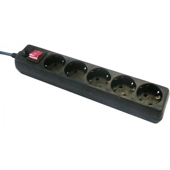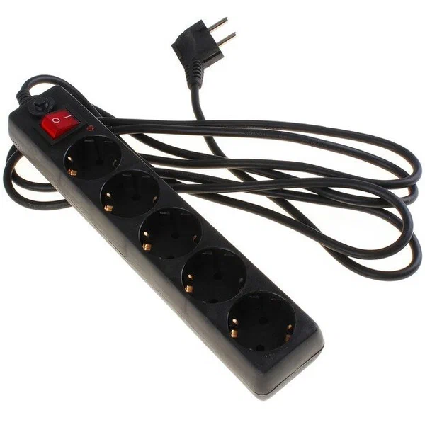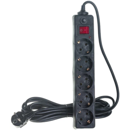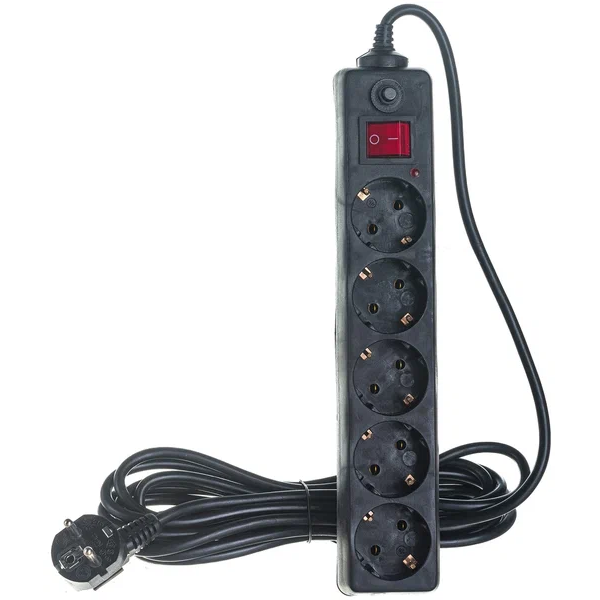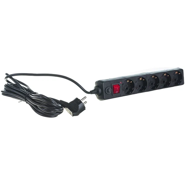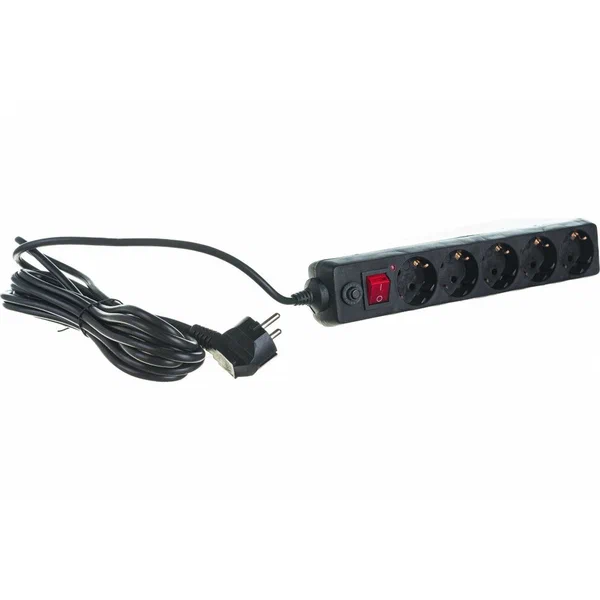 Сетевой фильтр TDM SQ1304-0003 СФ-05В выключатель, 5 гнезд, 5 метров, с заземлением, ПВС 3х1мм2 16А/250В черный