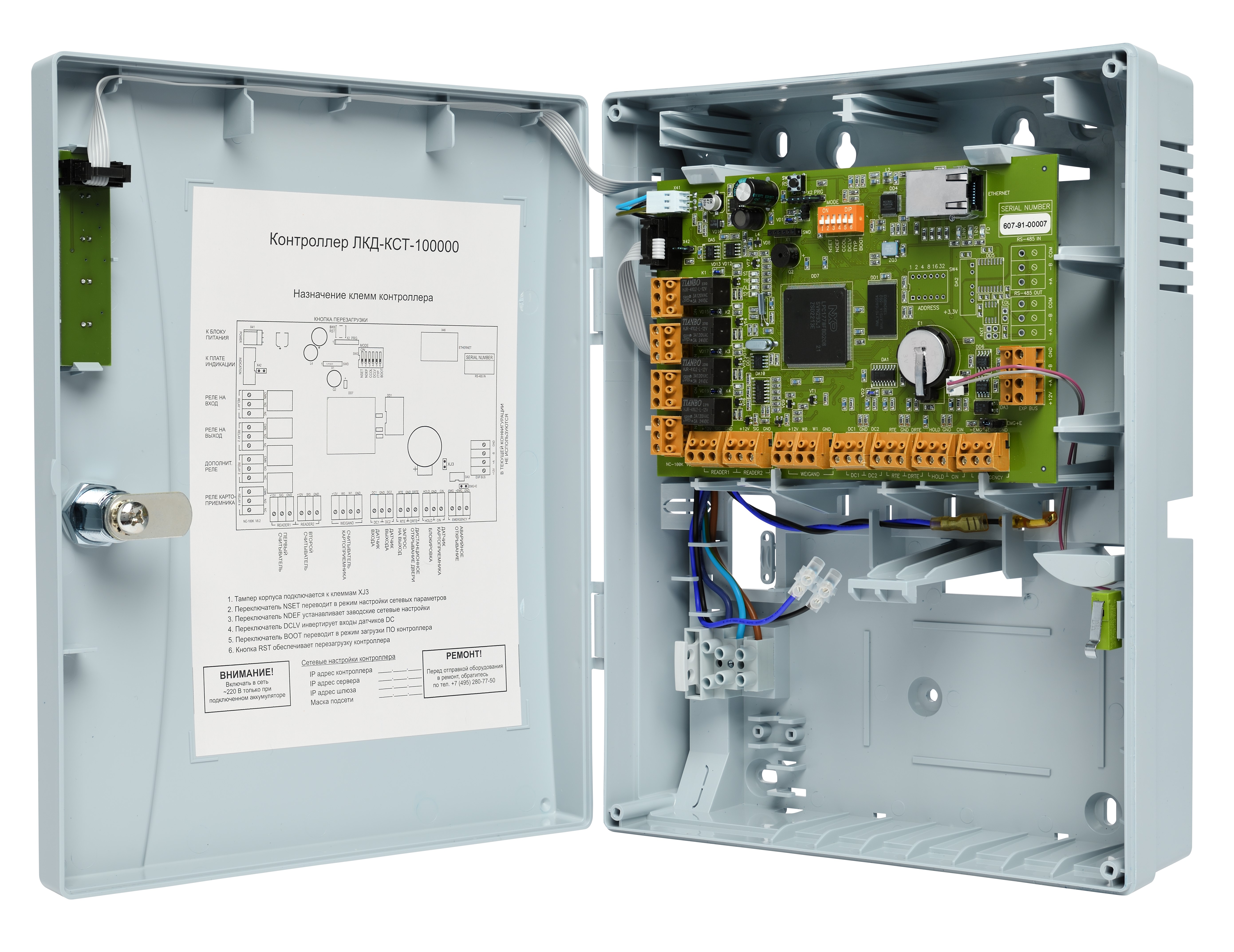 Сетевой контроллер доступа ЛКД-КСТ-100000 предназначен для использования в составе системы контроля доступа ЛКД-PNSoft и ориентирован в основном на обслуживание проходных крупных предприятий с большой численностью персонала. В устройстве предусмотрен ряд функциональных особенностей, отсутствующих в контроллерах других серий (например, работа с временными и гостевыми картами на аппаратном уровне, без участия ПК).