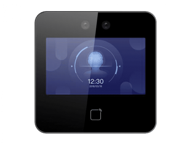4.3" цветной LCD сенсорный экран; 2 объектива 2Мп, H.264; WDR; режим аутентификации лиц: 1:1 или 1:N, до 1,500 лиц; до 3,000 карт; 150,000 событий; функции домофона; дальность распознавания 0.3м до 1.5м; скорость распознавания ≤0.2с, Ethernet 10/100/1000; RS-485; WiFi, Wiegand 26/34; USB; замок; магнитный контакт; кнопка выхода; темпер; DC12В, 2А; -10 °C...+60°C; IP44; пластик/металл