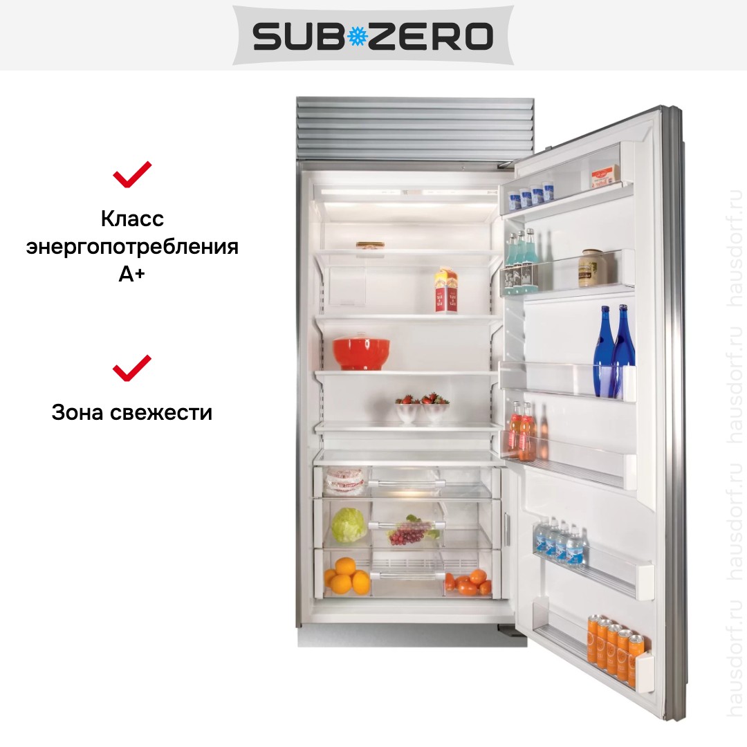 SUB-ZERO ICBBI-36R — вместительный холодильник с эргономичными полками и ящиками для хранения продуктов. Герметичная зона свежести сохраняет оптимальную влажность и температуру для длительного хранения овощей и фруктов без потери их полезных свойств и витаминов. Равномерное внутреннее освещение. Встроенный микропроцессор обеспечивает максимально точное и универсальное управление прибором.