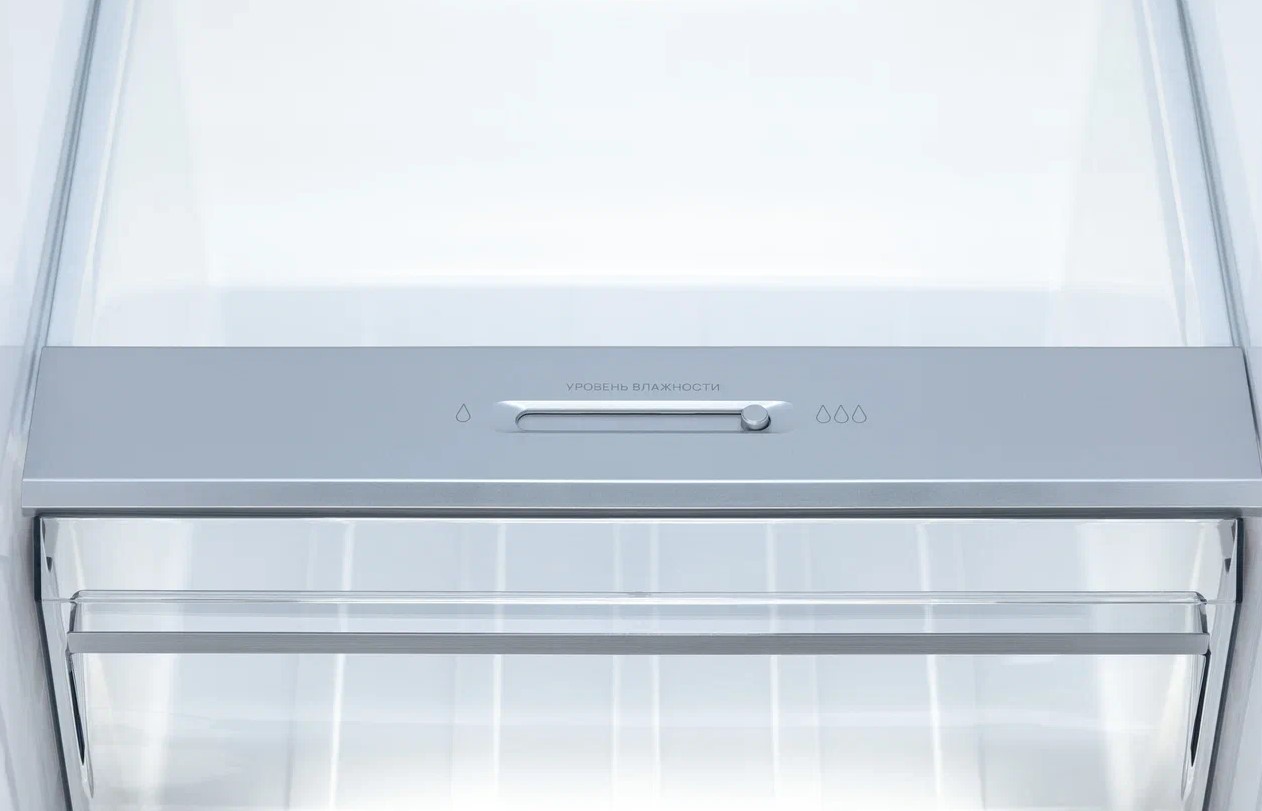 Специальная зона свежести предназначена для правильного и более длительного хранения овощей, фруктов, зелени. В ней поддерживается околонулевая температура, поэтому продукты не перемораживаются и не пересыхают. Система охлаждения этого холодильника — циркуляционная .