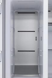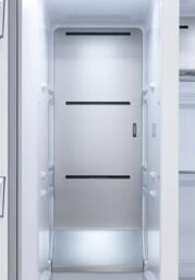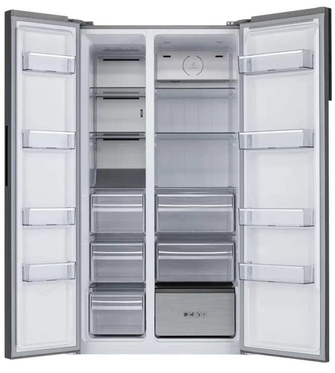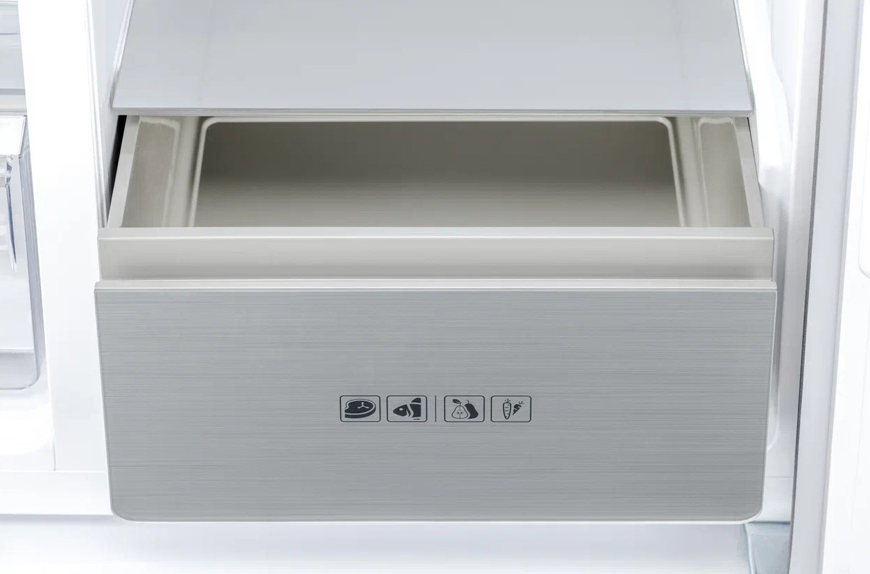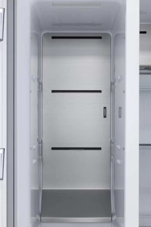 Данная модель — отдельностоящая, поэтому нужно тщательно подобрать место для ее размещения. Холодильник Side-by-Side с необычным расположением камер — сбоку друг от друга — позволяет увеличить объем продуктов для хранения. Такой вариант подходит обладателям просторной кухни, большим семьям, людям, которые запасают продукты и готовят впрок. Количество камер: 2.