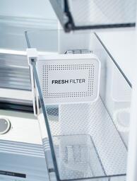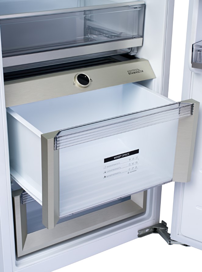 Специальная зона свежести предназначена для правильного и более длительного хранения овощей, фруктов, зелени. В ней поддерживается околонулевая температура, поэтому продукты не перемораживаются и не пересыхают.
