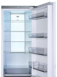 Встраиваемый прибор проще разместить в комнате, даже если общий метраж не такой уж большой. Вы можете спрятать его за декоративной панелью от мебельного фасада — советуем заранее определить нишу и заказывать панели исходя из типа крепления к двери. Способ монтажа в данной модели: жесткое крепление (система door on door) Холодильник без морозильной камеры имеет свои преимущества: больше места для хранения продуктов краткого срока годности, разнообразие полок и ящиков для овощей, фруктов, молочных изделий. Количество камер: 1.