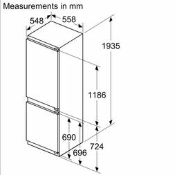 Встраиваемый прибор проще разместить в комнате, даже если общий метраж не такой уж большой. Вы можете спрятать его за декоративной панелью от мебельного фасада — советуем заранее определить нишу и заказывать панели исходя из типа крепления к двери. Способ монтажа в данной модели: жесткое крепление (система door on door) Благодаря внушительным размерам, в частности высоте, она подходит большим пространствам — просторной кухне, еврогостиной. Вы можете поменять направление открывания двери, так как упор переставляемый и ее можно перевесить на другую сторону. Такая функция открывает больше возможностей для установки. Холодильник с морозильником обладает всеми опциями, которые чаще всего ищут и выбирают покупатели. Стандартная конфигурация — универсальный вариант для любой квартиры. Количество камер: 2.